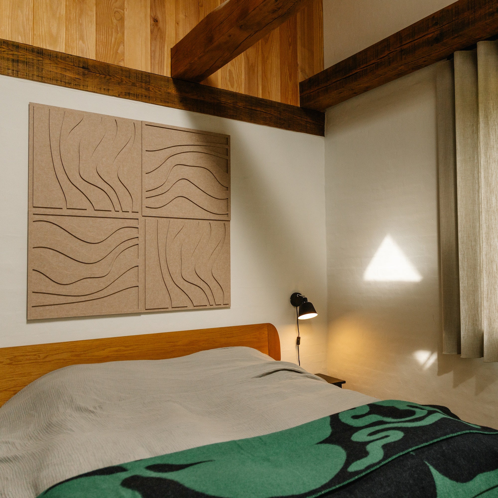 Genom att förena inspirerande konst med funktionerna hos de akustiska egenskaperna som är gömda i materialet, strävar vi efter att tänja på gränserna för hur du kan påverka ditt utrymme ytterligare – över skönhet, form och funktion samtidigt som det förbättrar det allmänna välbefinnandet.